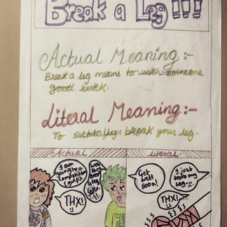 To achieve the aim of making these idioms a part of my students vocabulary, I gave them a task to create posters with the literal meaning that can be derived from the words of the idiom, a drawing which demonstrates it and the meaning of the idiom. This made it easier for the students to learn and retain these idioms. And to my pleasure, it became a second nature to them to use them.