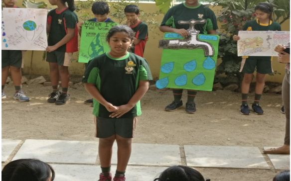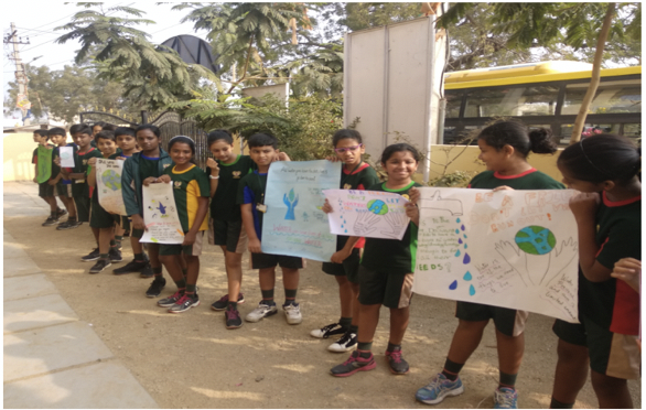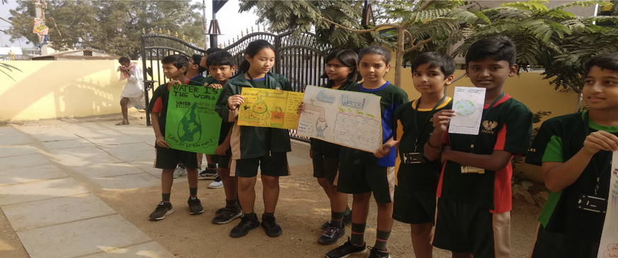 With the scarcity of water everywhere around the globe, the students of grade 6 went on an awareness to a government school in Kondakal village. There, the students spoke about the importance of water and persuaded the students of Kondakal school to save water. The students created posters and gave speeches in English and Telugu in order to cajole them to save water. This activity was done in connection to the Language and Literature unit of the students, Convince me, where they learnt different persuasive techniques to sway the audience.